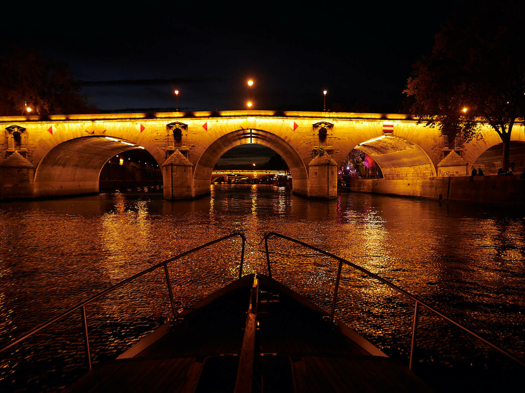 Le soir, Paris devient une scène parfaitement orchestrée. En naviguant, vous découvrirez les ponts illuminés, les façades dorées et les monuments emblématiques qui se montrent sous un autre jour. Nous aimons finir la croisière par le scintillement de la tour Eiffel . C’est un moment absolument magique. Même les parisiens les plus blasés sont éblouis par le spectacle et la vue du bateau. Vous êtes seuls face à la tour Eiffel une coupe de champagne à la main, quoi de plus exclusif !